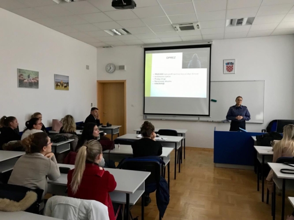 U četvrtak, 17. siječnja 2019. godine u Visokoj školi Virovitica službenica za prevenciju Policijske uprave virovitičko-podravske Ana Kratohvil Katić, a u suradnji s Ivanom Vidak, dipl.bibl. i prof., pred., održala je zanimljivo i interaktivno predavanje o elektroničkom nasilju i sigurnosti na internetu studentima treće godine smjera Poduzetništvo usluga u sklopu kolegija Poslovna etika i modula Zaštita podataka.