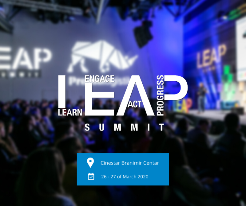 Interesiraju vas nove tehnologije, digitalne teme, društvene inovacije, održivi razvoj i poduzetništvo te inspirativne priče? Ako je vaš odgovor DA, ovim putem vas želimo pozvati na sudjelovanje na internacionalnoj konferenciji „LEAP Summit“ koja će se održati u Zagrebu od 26. – 27.03.2020. U 2020. LEAP Summit obilježava 5. obljetnicu. Generalni partner konferencije je Predstavništvo Europske komisije u Hrvatskoj, a konferencija se održava pod pokroviteljstvom hrvatskog predsjedanja Vijećem Europske unije.