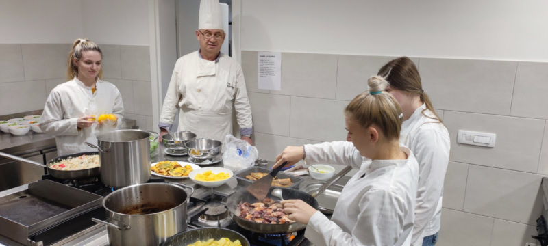 U skladu s Izvedbenim planovima stručnog prijediplomskog studija Menadžment, modul Menadžment ruralnog turizma, studenti kontinuirano održavaju gastro vježbe u zimskom semestru iz kolegija Enogastronomija. Kao i prethodnih godina, tijekom zimskog semestra ak. god. 2024./2025., studenti su kroz više turnusa održali gastro vježbe pod mentorstvom chefa Darka Baričevića. Posebno je važno istaknuti da se od kraja 2022. godine za potrebe istih koristi novo opremljeni Gastro praktikum s dijelom opreme koja je nabavljena u okviru EU projekta Gastrotop, a koji je sufinanciran kroz Interreg V-A Hungary-Croatia Co-operation Programme 2014-2020. Upravo su suvremeno opremljeni show cooking uređaji doprinijeli učinkovitoj realizaciji definiranih zadataka pripreme jela te unaprijedili kulinarske vještine studenata.
