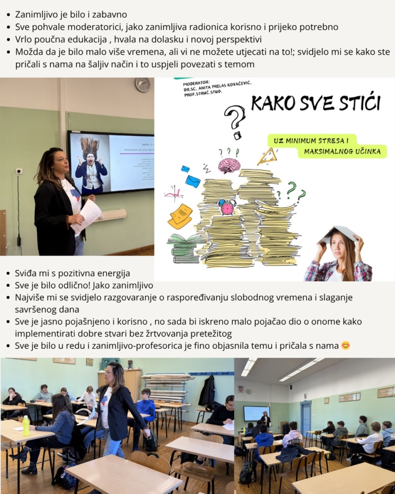 Danas su učenici 2.c razreda Gimnazije Petra Preradovića uz pomoć profesorice dr. sc. Anita Prelas Kovačević, prof.struč.stud. otvorili važno pitanje: Kako sve stići uz minimum stresa?