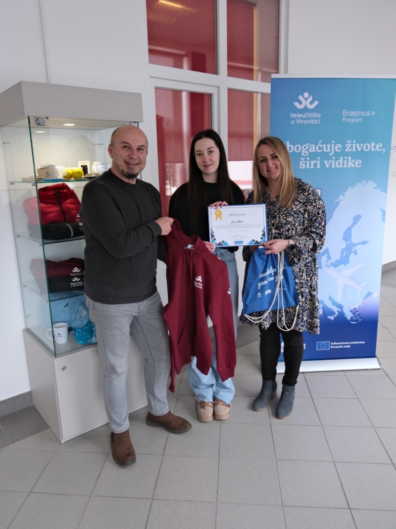 Veleučilište u Virovitici obilježilo je važan trenutak u svojoj međunarodnoj djelatnosti uručivanjem priznanja studentici Lauri Baksi za 100. odlaznu mobilnost ostvarenu u okviru Erasmus+ programa. Riječ je o značajnoj prekretnici koja potvrđuje dugogodišnju predanost Veleučilišta internacionalizaciji visokog obrazovanja i poticanju studenata na stjecanje međunarodnih iskustava.