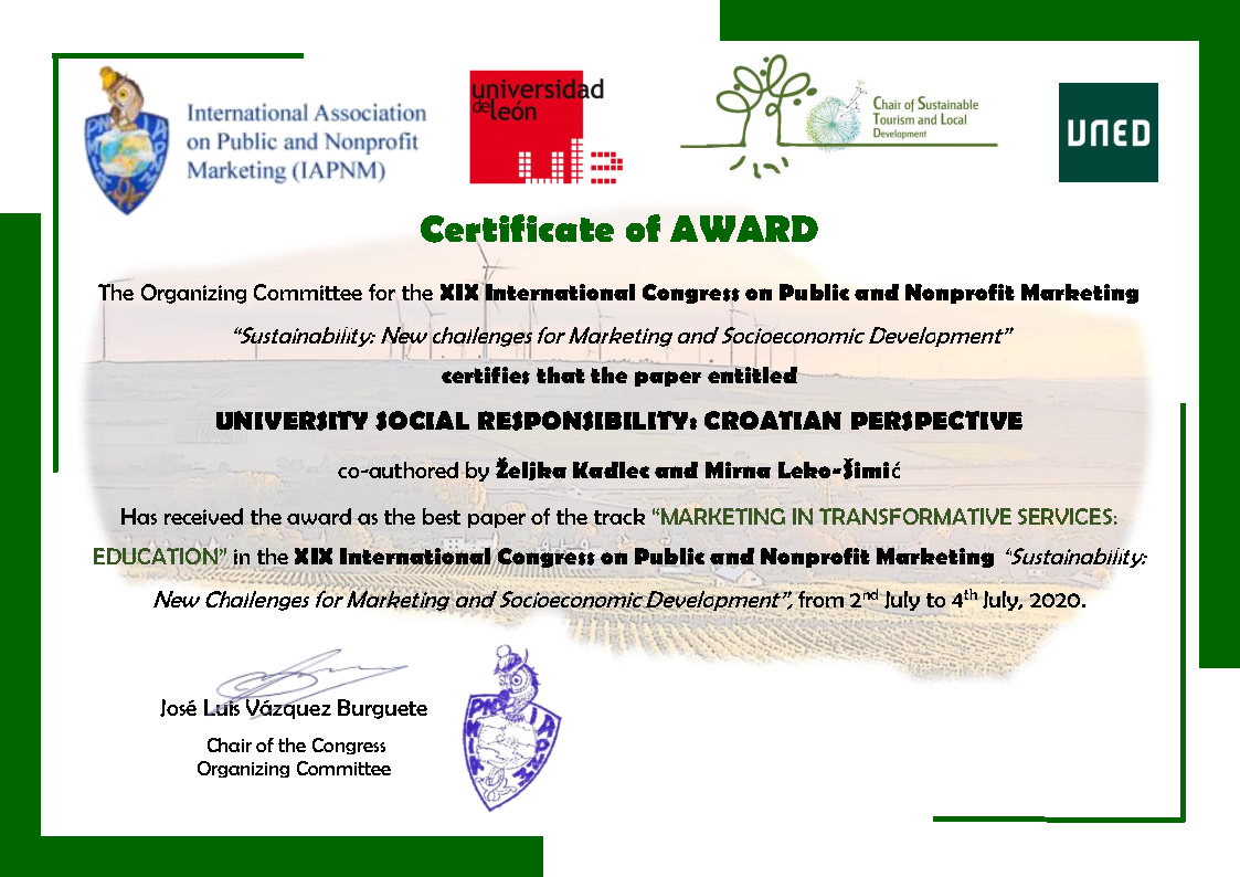 Rad pod nazivom "University social responsibility: Croatian perspective" odabran je [...]